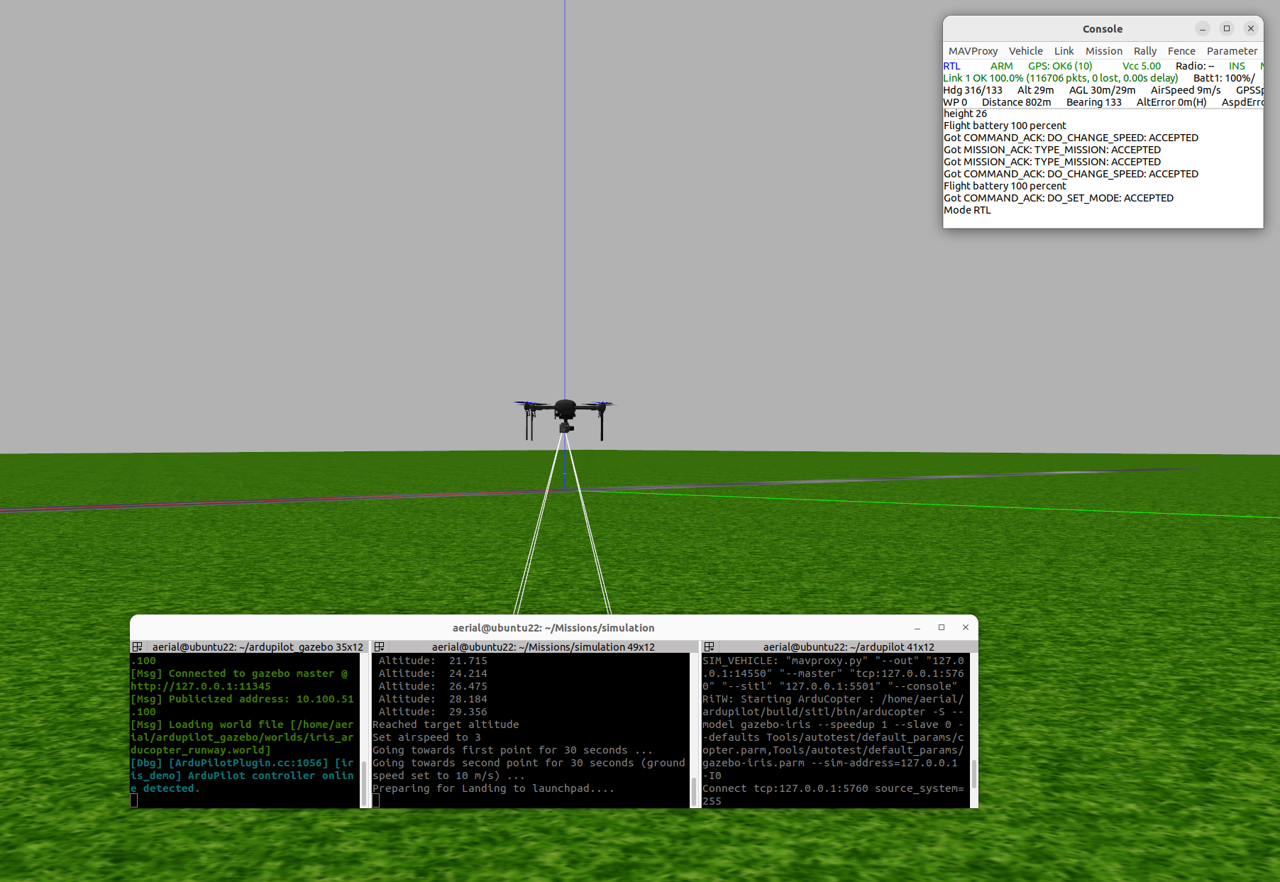 In recent years Quadcopter has been used in many applications such as military, security & surveillance, service delivery, disaster rescue and much more due to its flexibility of flying. In this report, Quadcopter will be used for it's basic operation and some enhancment operation which will be used in future for Points cloud Mapping of Electromagnetic Radiations inside a Cyclotron Chamber between many locations that is received from the Ground station. The Quadcopter will execute an autonomous flight using the concept of companion PC. Raspberry PI 3 (RPI3) will control the Quadcopter by command the controller of the drone (Navio 2 & Pixhawk) by using DroneKit-Python API to send MAVLink messages to the Ardupilot. This concept is useful to perform some additional tasks like Precison landing on Aruco marker to the autopilot and provide such a smart capability like image processing, real time Quadcopter data plotting using GUI and path planning which cannot be done by the flight controller alone. Basically, the idea has been stimulated and the code has been tested by using the SITL Simulator with MAVProxy under Ubuntu 20.04 environment. The result of controlling the Quadcopter using Python script was excellent and give a motivation to implement the same script on a real Quadcopter. The implementation on real Quadcopter was perfect as it has given the same behavior as the SITL drone in the simulation.